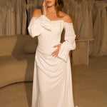 Robe de Mariée Off-Shoulder Perlée – Modèle Élégance